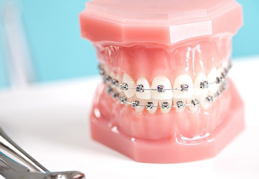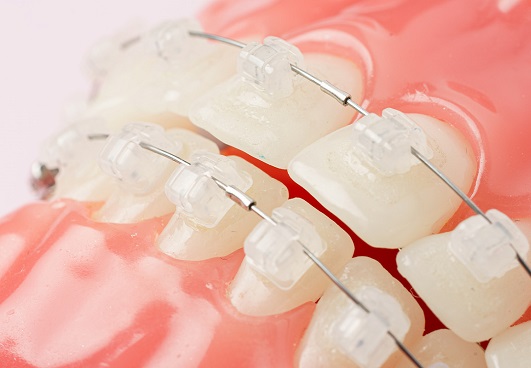 素材は金属やプラスチック、セラミックなどがあり、歯の表側か裏側にワイヤーを着けます。